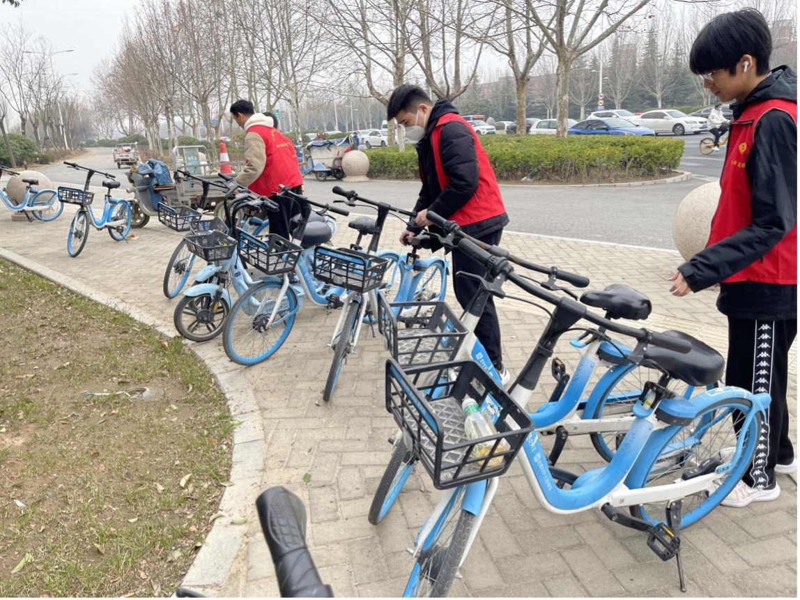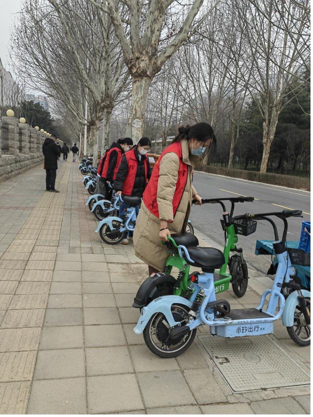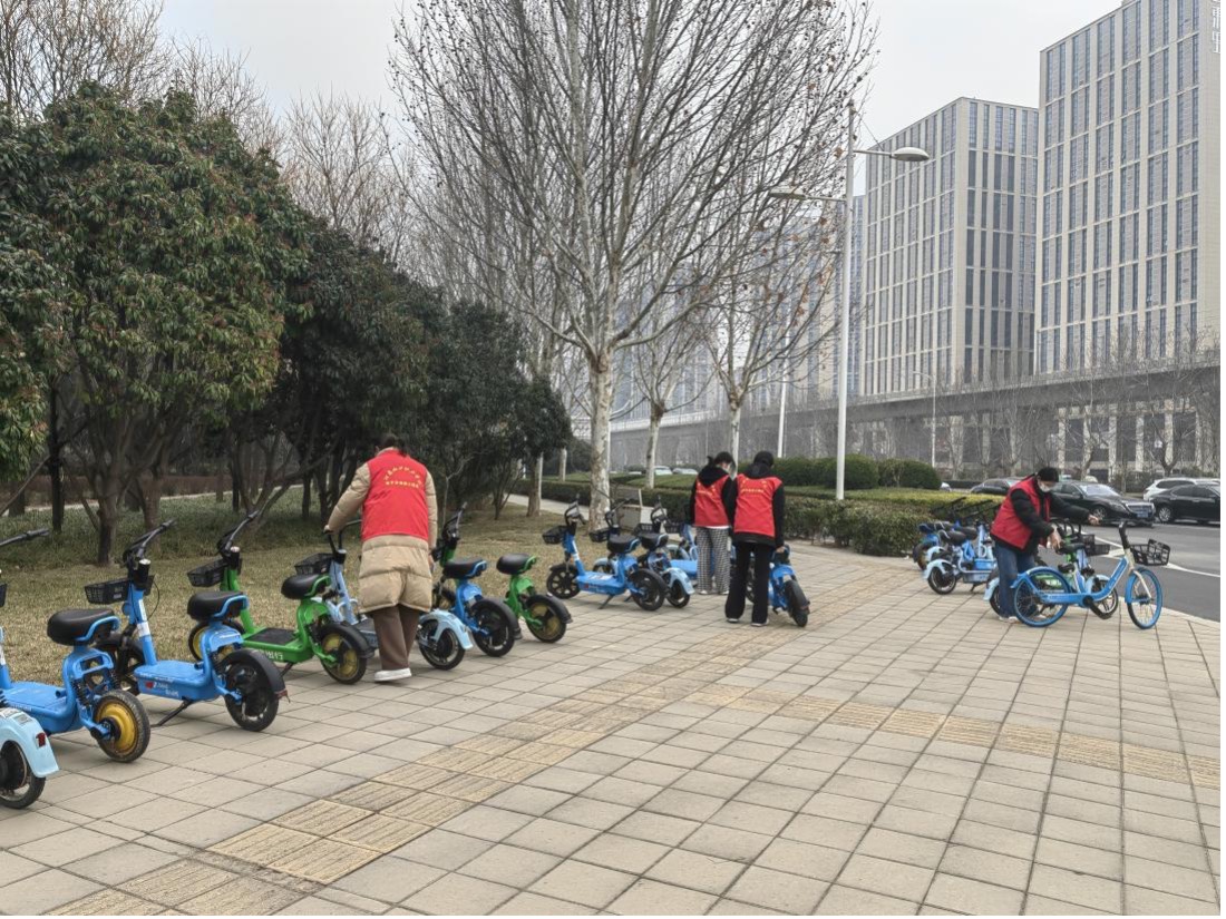 地矿公司周围集聚了中原科技公司、郑州幼专等诸多高校,员工日常出行需求较大。共享电单车大大方便了员工们的日常出行,然而随着共享单车的大量投放和使用,在街道上也出现了乱停乱放、堵塞占道、恶意损坏等现象。为改善这一现状,信息系员工志愿者在老师的带领下巡视附近街道共享单车的摆放情况。在郑开大道与芦医庙大街交叉口附近,志愿者们看到大片的共享单车被停得东倒西歪,及时上前扶正,摆放整齐,方便市民使用;当看到随意乱放、占道停放的车辆时,搬到集中停放处。电单车较自行车沉重许多,员工们便互相配合抬起转移。合理使用、规范停放共享单车仅靠志愿者的力量是不够的,员工们还向上前的扫码用车的老员工倡导宣传文明共享、绿色出行的理念,希望通过这样的志愿行为唤醒大家的文明意识,为文明街道建设做出自己的一点力量。经过志愿者们的巡查整理,周围街道的共享单车摆放井然有序,一排排整齐的蓝色也成为城市街头的一道靓丽风景。