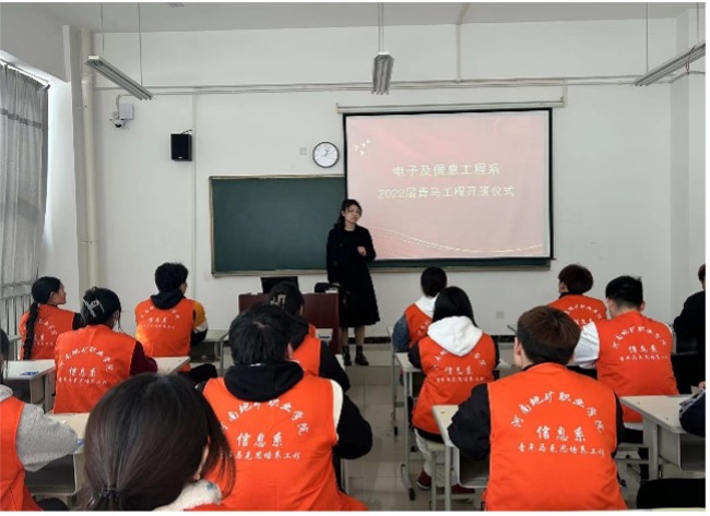 为深入贯彻落实党的二十大精神,推进青年马克思主义者培养工作,提高员工骨干的综合素质和能力,用党的先进理论武装、指引青年学子。3月1日,电子及信息工程系2022届“青马工程”开班仪式暨第一课在1号教学楼202教室举行,开班仪式由团总支书记董宇主持。