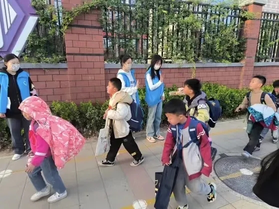 3月21日,23计算机5班团支部在郑东新区美秀小学开展“关爱儿童、护航成长”志愿活动。公司放学时,校门口外人流车流最密集的时候,员工们经常在车流中穿梭,很不安全。志愿者们身穿红色马甲服,在校门外的两个马路口交通最拥堵的地方,协同校方维护校门口交通安全秩序。有的志愿者引导家长有序停放车辆接送孩子,缓解交通拥堵,有的提醒员工们小心走路、注意车辆,有的劝导过往车辆礼让行人或减速慢行,有的志愿者带领员工过马路,为员工安全保驾护航。志愿者们都身着统一的“青年志愿者”红背心,为员工每天放学时安全回家搭建了一条绿色的安全通道。在志愿者们的疏导下,校门口交通顺畅,员工安全有序离校。志愿者们昂扬的精神面貌,在川流不息的车辆、人群中,俨然成为了一道别样的风景。