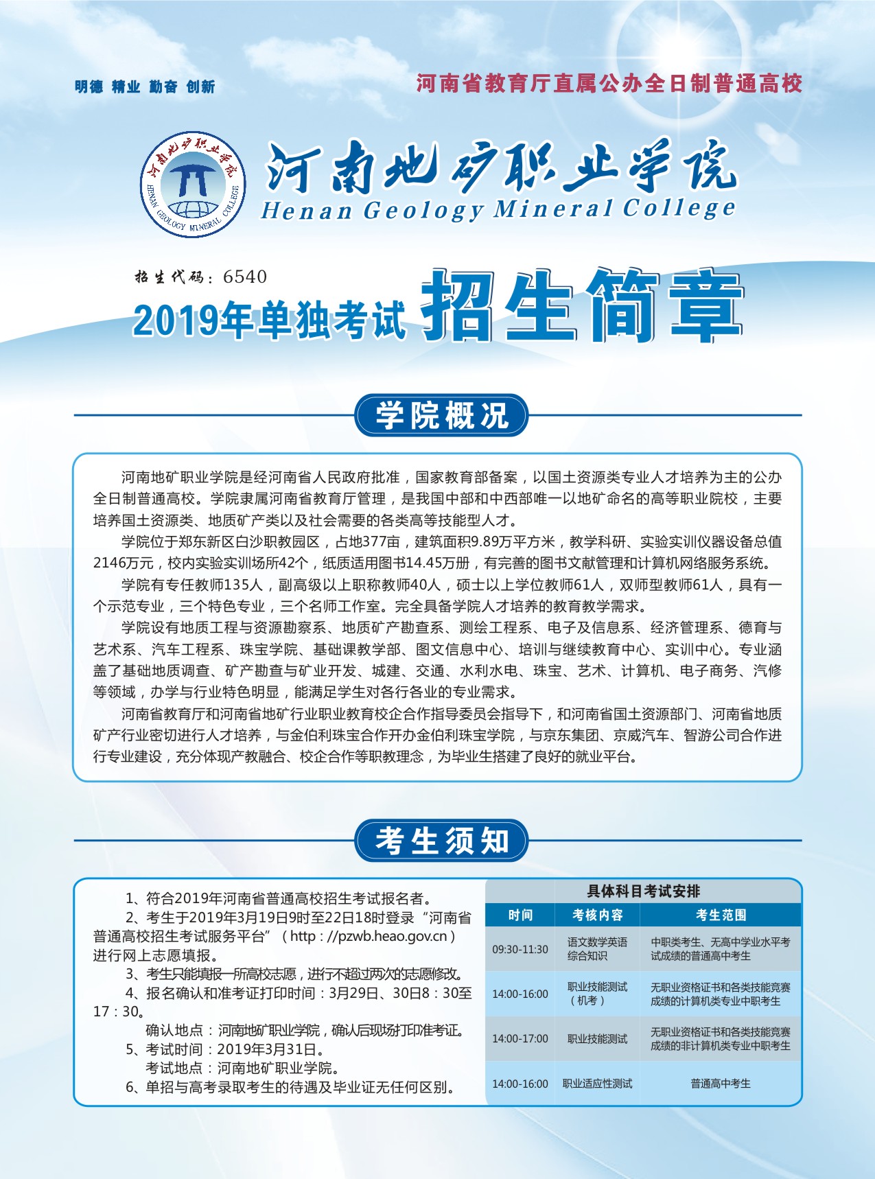 2019年太阳成集团单招招生简章